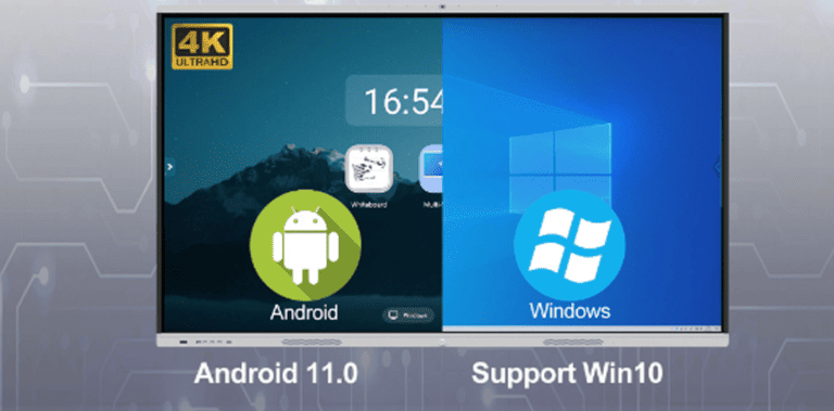 - Built in professional whiteboard software, full 4K resolution user interface and GIF icons.